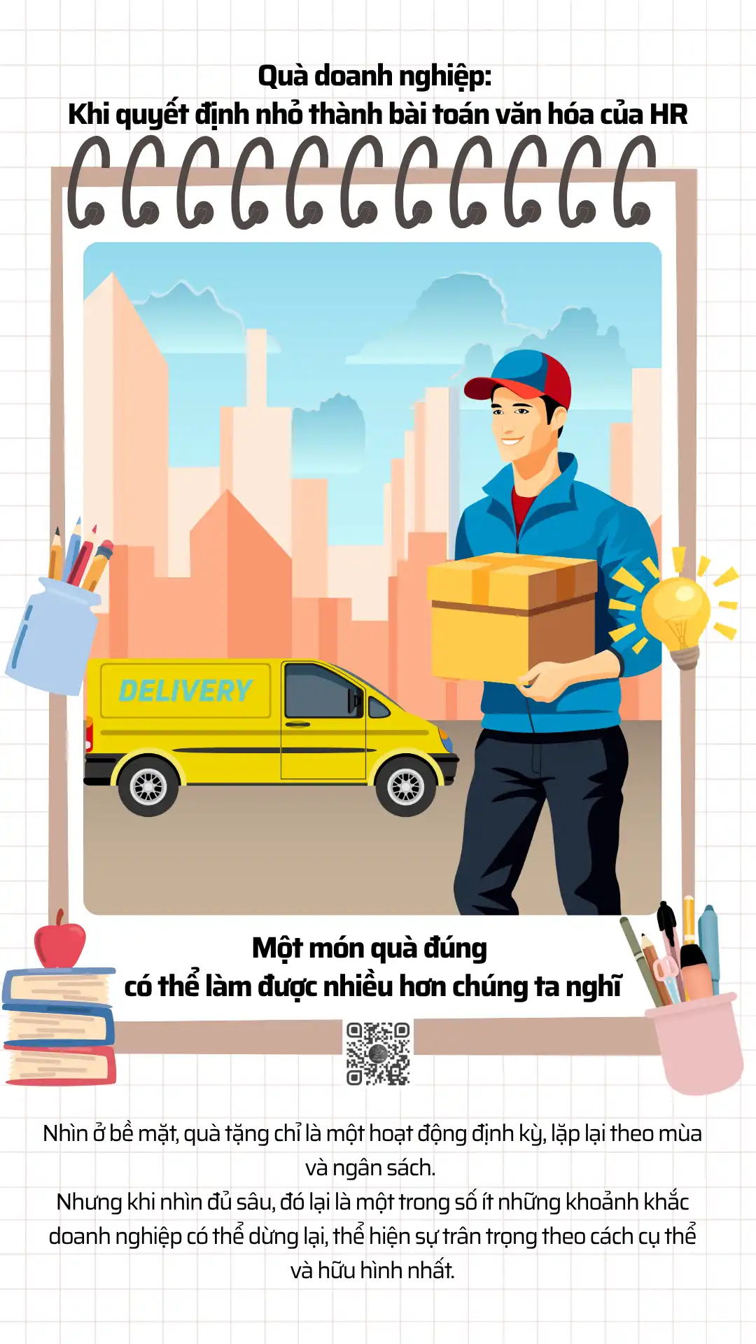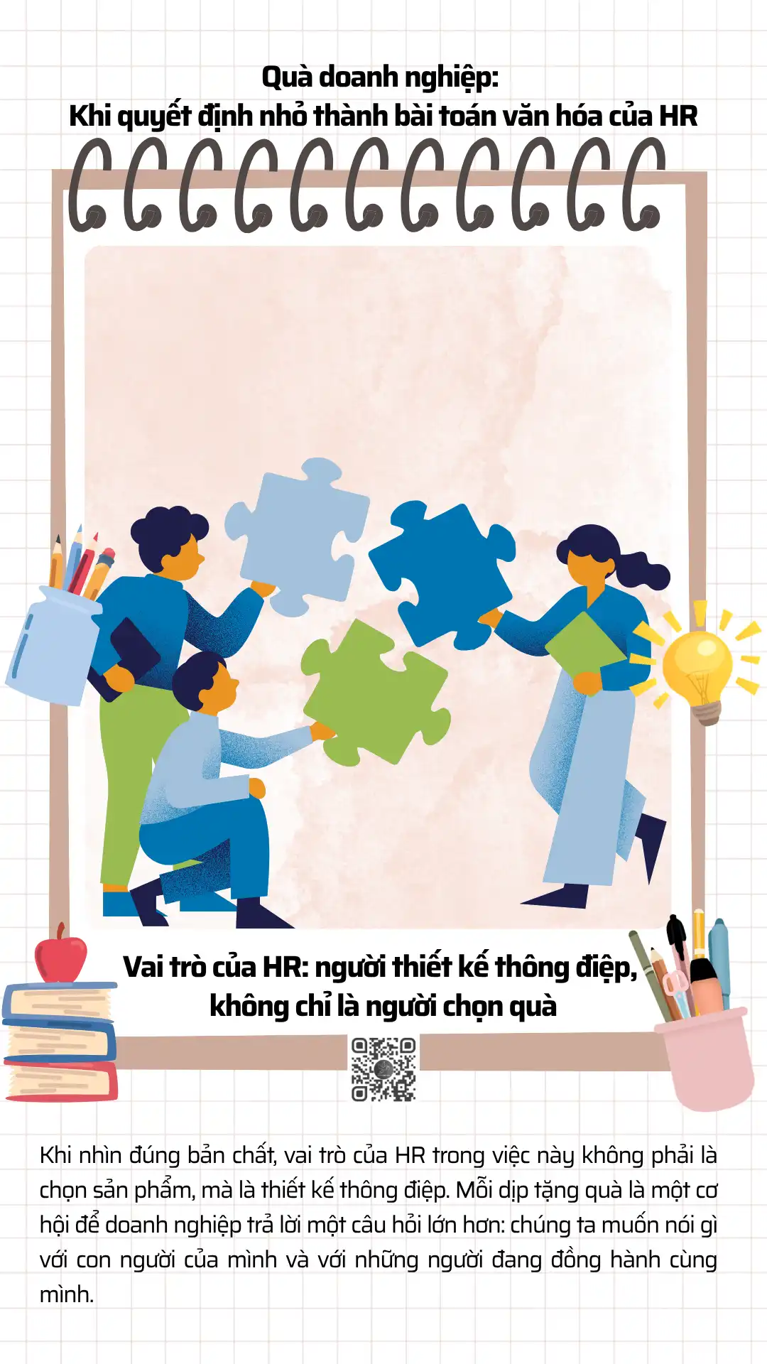 Khi nhìn đúng bản chất, vai trò của HR trong việc này không phải là chọn sản phẩm, mà là thiết kế thông điệp. Mỗi dịp tặng quà là một cơ hội để doanh nghiệp trả lời một câu hỏi lớn hơn: chúng ta muốn nói gì với con người của mình và với những người đang đồng hành cùng mình.