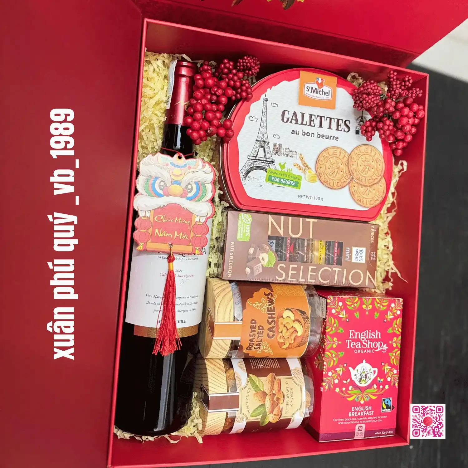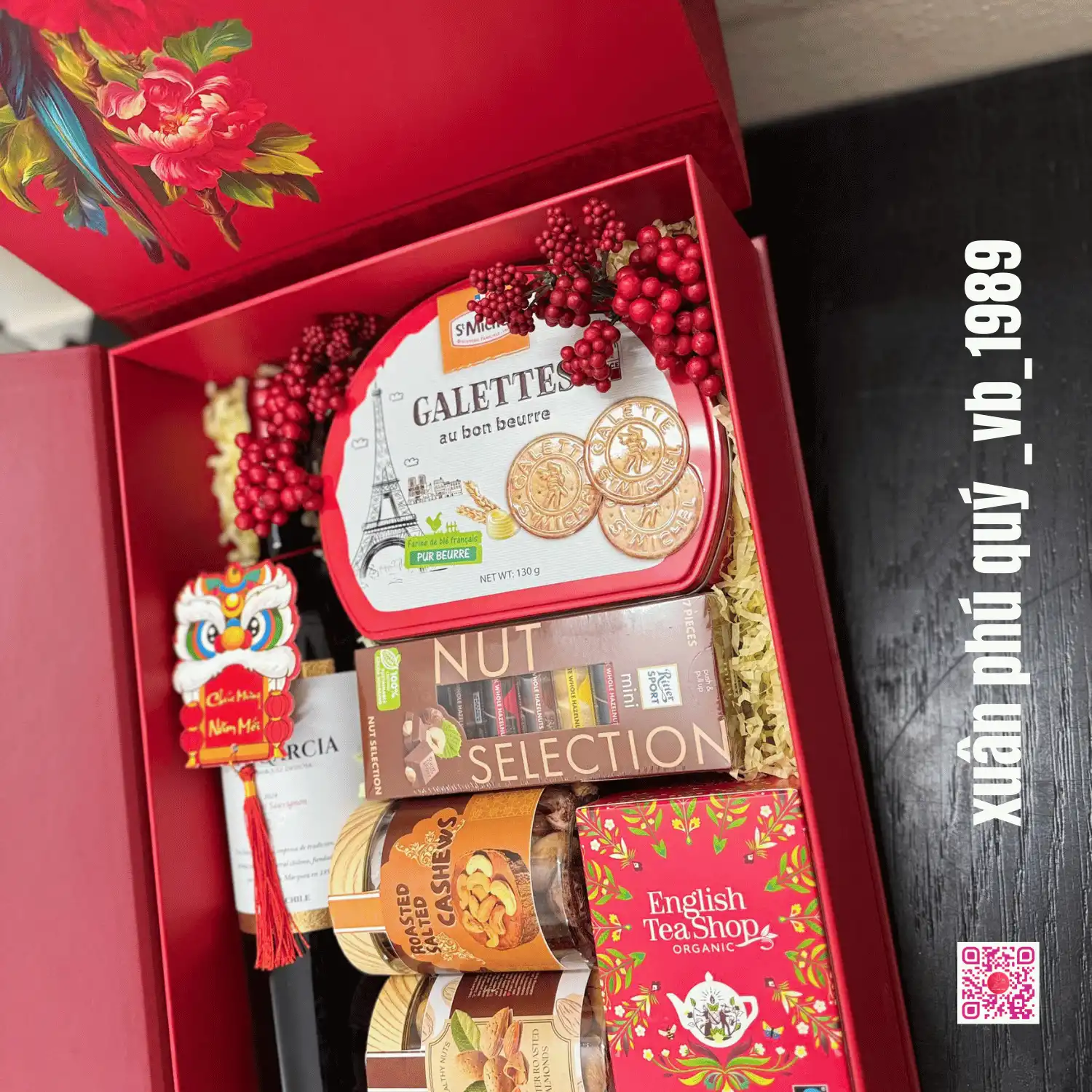Hộp quà Xuân Phú Quý được thiết kế với sắc đỏ ánh kim cùng hình ảnh chim phú quý đậu giữa hoa mẫu đơn, biểu tượng của thịnh vượng, may mắn và sự vươn nở rực rỡ trong năm mới. Đây là mẫu quà Tết cao cấp dành cho doanh nghiệp, khách hàng và đối tác quan trọng – nơi từng sản phẩm đều được chọn lọc từ nhiều quốc gia, mang ý nghĩa trọn vẹn của sự đủ đầy và tri ân.