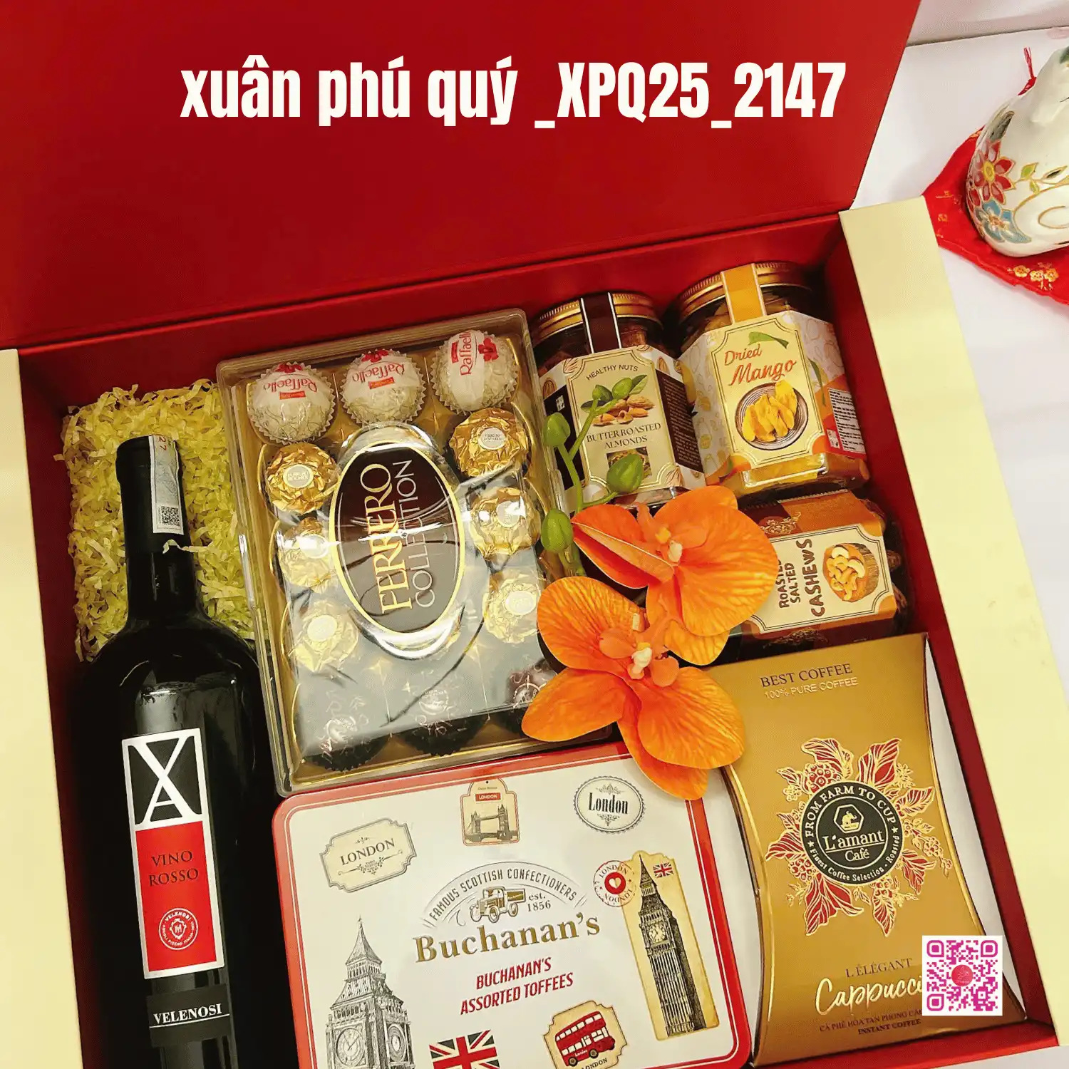 Bộ quà XUÂN PHÚ QUÝ là sự kết hợp tinh tế giữa chất liệu cao cấp, màu sắc sang trọng và tinh thần chúc Tết trọn vẹn.
